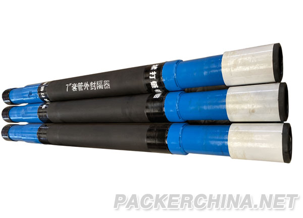 It is used for staged packing of open holes for further operation. The pressure opens the packer’s rubber for setting. It mainly consists of central pipe, rubber, open/close valve. The open valve is activated by enough pressure to demanding value, and then set the packer. More pressure shall activate the close valve to close the packer.